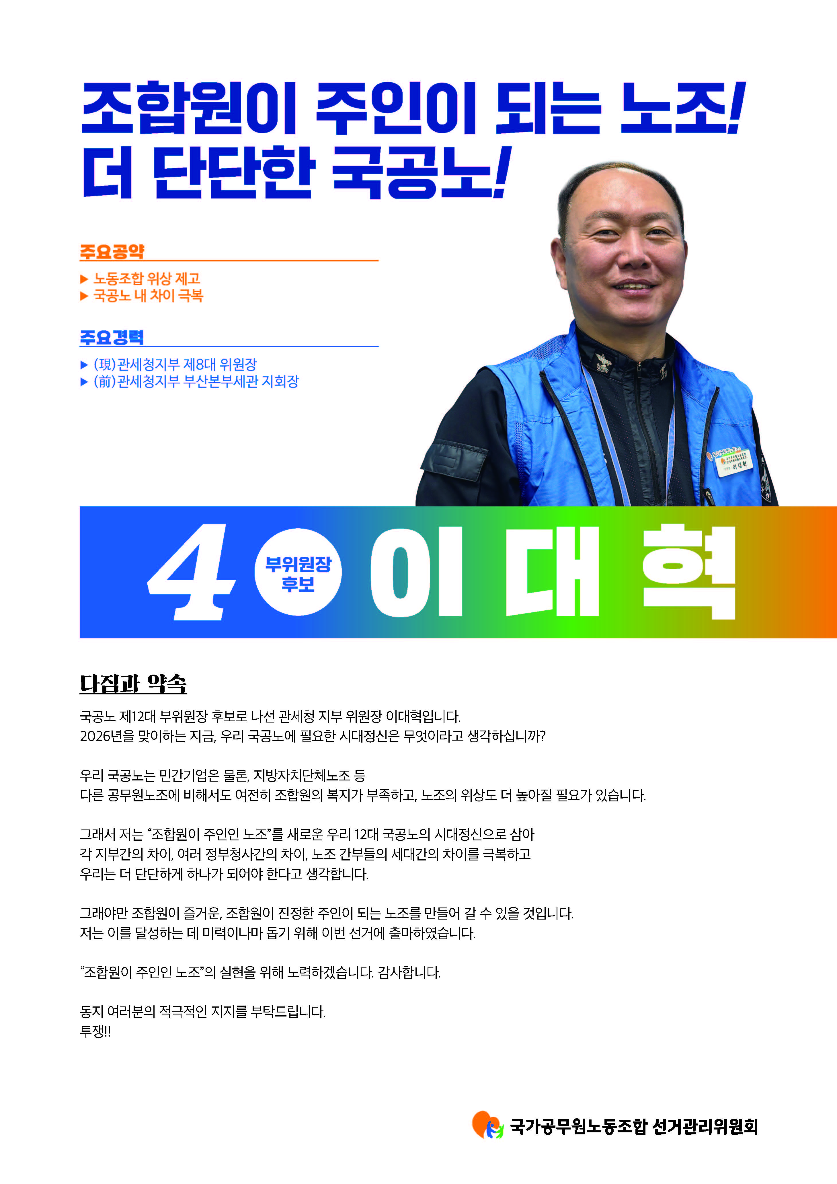 (현) 관세청지부 제8대 위원장